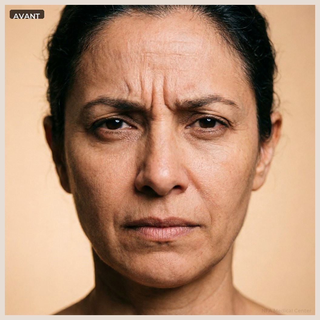 بوتوكس خطوط التجهّم — خطوط التجهّم بين الحاجبين. يجري الدكتور ناهد فتحي أحمد هذا الإجراء بنهج شخصي مكيّف لكل مريض.